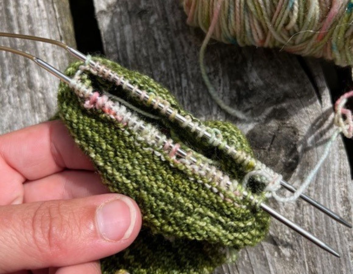 Vi træner teknikken ved at slå op til en strømpe sammen, og når teknikken sidder lige i skabet, har vi forhåbentlig også tid til at se på forskellige hæltyper - og sørme også en, hvor vi skal bruge Magic Loop teknikken.