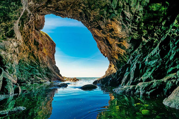 Undervejs fortæller en erfaren skipper om Bornholms fascinerende historie og den lokale natur. Du kommer undervejs forbi klippehulen Den Våde Ovn, hvor du vil opleve noget af det tætteste som du kommer på en dansk drypstenshule. Nyd synet af farverne fra de mange mineraler, der sætter deres præg på hulens vægge.