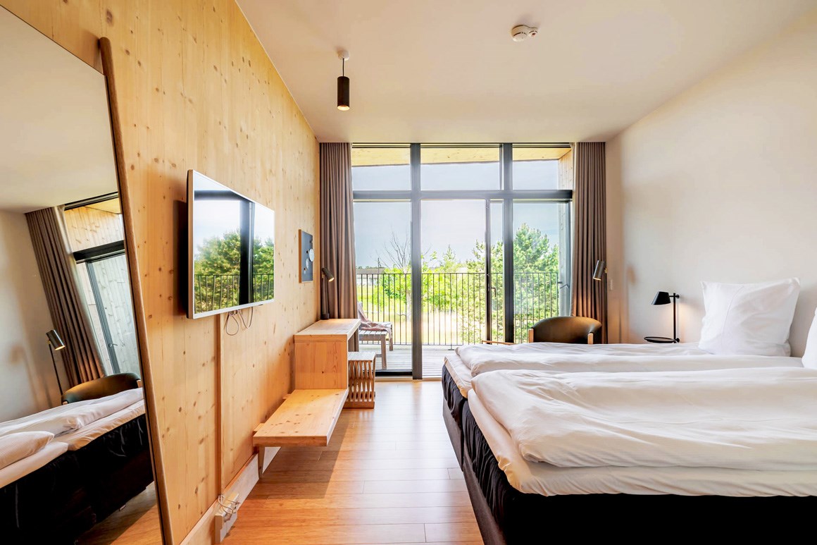 Hotellet byder på flotte værelser, som alle er individuelt indrettet med bornholmsk kunst fra Jo Dam Kjærgaard. På taget af hotellets nyeste værelsesfløj, der er opført CO2-neutralt, finder du en skøn tagterrasse med spabad og sauna.
